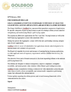 According to the statement, the directive forms part of broader measures to facilitate impending reforms to Ghana’s national gold buying framework.