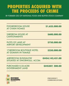 “We have frozen all these assets and will be taking steps to have them confiscated by the state in the course of the criminal proceedings,” Dr. Ayine stated.