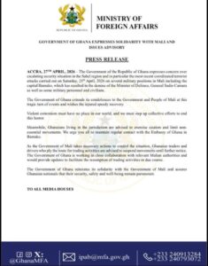Reacting to the developments, the Government of Ghana expressed concern over the coordinated attacks and extended condolences to the Malian government and families of victims, describing the situation as tragic.