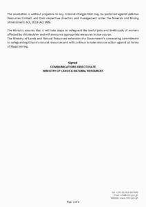 In a statement issued on April 26, the Ministry of Lands and Natural Resources explained that the decision followed findings by the Minerals Commission, which revealed that the company had breached several provisions of Ghana’s mining laws.