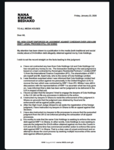 Following the registration of the UK judgment in Ghana, he said he instructed his lawyers to oppose its enforcement, arguing that the judgment was procured through fraudulent means and that enforcing it would violate public policy.