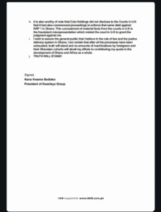 He also accused Cola Holdings Limited of misusing court procedures, alleging that the company failed to inform the UK court that it had already initiated separate legal proceedings in Ghana against KRP 1 over the same matter.
