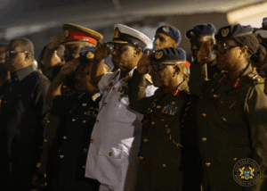 Chief of Staff Julius Debrah, along with other dignitaries, received the bodies as clergy members offered prayers.