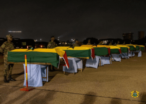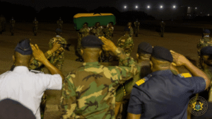 The remains were recovered from the crash site near Sikaman in the Adansi Akrofuom area of the Ashanti Region and arrived in the capital aboard a Ghana Air Force Casa aircraft later that night.