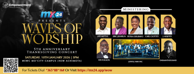 Accra, Ghana – Ghana’s leading youth-focused media and entertainment platform, MX24 TV, has announced the 2025 edition of its flagship worship event, MX24 Waves of Worship, as a 5th Anniversary Thanksgiving Concert, scheduled for Saturday, 10th January 2025, at...